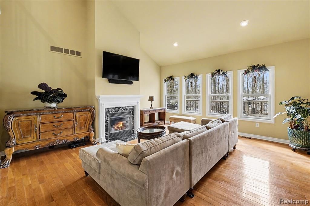 Discover this stunning 4-bedroom, 2.5-bath home with a neutral aesthetic throughout, in highly sought-after Grand Blanc, offering 2,580 square feet of beautifully designed living space. From the moment you enter the home, you’ll appreciate the open-concept layout and abundance of windows that fill the home with natural light. The spacious main level features soaring ceilings in kitchen, entryway, and living area, rich hardwood floors and a seamless flow perfect for both everyday living and entertaining. The updated kitchen is a true highlight, complete with granite countertops, subway tile backsplash, a deep stainless sink, and stainless steel appliances, including a brand-new oven. Upstairs, you’ll love the loft providing an open overlook to the main level, adding to the home’s airy and expansive feel. The first floor primary en suite offers a walk in closet, great for extra storage, primary bathroom has dual vanities and a sunken tub for a relaxing soak the remainder of upstair bedrooms are of ample size with great views. A bright and inviting 4-seasons sunroom provides the perfect space to relax and enjoy the outdoors year-round, with direct access to the expansive 60x12 deck—ideal for entertaining or unwinding. The daylight basement features impressive 9-foot ceilings and offers endless potential for additional living space, recreation, or storage. Additional updates include recently cleaned ductwork and a sump pump that is just 2 years old for added peace of mind. Complete with a 2-car attached garage, this home perfectly blends comfort, style, and functionality in a fantastic location. Don’t miss your opportunity to make this turn key home yours!