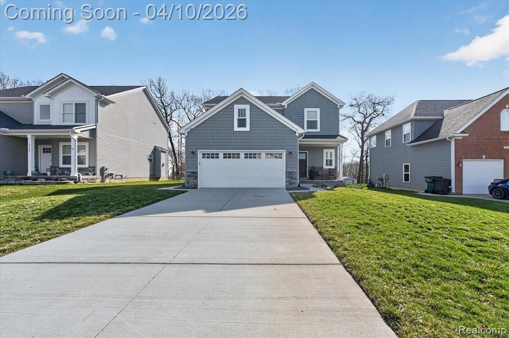 Welcome to 2136 Rolling Hills Dr in Holly Township—a beautifully maintained single-family home built in 2020 that blends modern design with everyday comfort. At the heart of the home, the spacious kitchen is designed to impress, featuring a large center island ideal for meal prep and casual gatherings, along with a convenient breakfast bar. Elegant countertops, classic shaker cabinetry, and a striking wall-mounted chimney range hood create a refined yet functional space. The open-concept layout flows seamlessly into an expansive living room, where a cozy fireplace serves as the focal point—perfect for relaxing evenings or entertaining guests. This home offers three well-appointed bedrooms, including a standout primary suite with a tray ceiling that adds depth and sophistication. The ensuite bathroom is thoughtfully designed with a double vanity, a beautifully tiled shower, and a generous walk-in closet that provides excellent storage and organization. With a total of three bathrooms and a dedicated laundry room, the home balances style with practicality. The open floor plan enhances the sense of space and light throughout. Step outside to enjoy a welcoming porch and a spacious patio, ideal for outdoor living. Whether you're hosting dinners in the outdoor dining area or unwinding by the fire pit, this backyard is designed for both relaxation and entertainment. This property offers a rare opportunity to own a move-in-ready home with modern finishes, thoughtful design, and inviting indoor and outdoor spaces.