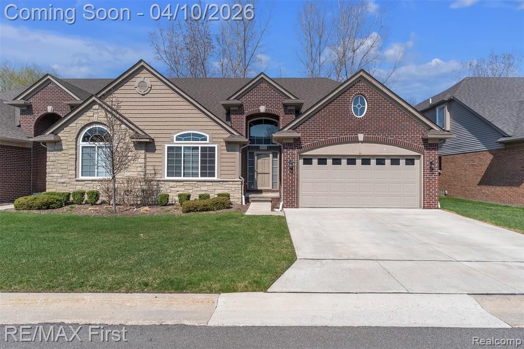 EVERYTHING NEW AS OF 2021! Why wait for a new build? Move right into this meticulously maintained condo on a $20K PREMIUM WOODED LOT—rare private nature views in the heart of the city. This unit is loaded with high-end architectural upgrades including VAULTED CEILINGS in the living room and a custom COFFERED CEILING in the primary suite. The open layout features HARDWOOD FLOORS, GRANITE COUNTERTOPS in the kitchen and all bathrooms, and UPGRADED PREMIUM CARPET. The kitchen and both baths feature Granite throughout. Enjoy the convenience of first-floor laundry and a massive unfinished basement with high ceilings that is a blank slate for more square footage. Unbeatable location directly across from the GM TECH CENTER with instant access to I-696. All the builder upgrades are already done—just move in and enjoy the view!
