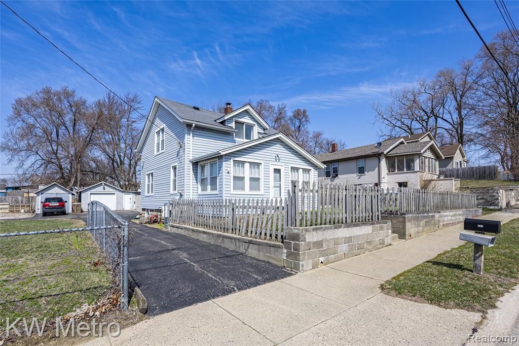 Welcome to 635 Lounsbury Ave in Pontiac — a unique 3-bedroom, 1.5-bath home offering approximately 1,000 sq ft and spanning four lots with multiple parcel IDs, creating an exceptional combination of outdoor space, function, and potential. Inside, you’ll find updated flooring, a refreshed kitchen, updated plumbing and electrical, a full basement, and an oversized primary bedroom that truly stands out, along with room for a buyer to continue adding their own style and finishing touches. The fully enclosed front porch adds extra usable living space, while the exterior offers a large fenced yard, multiple outdoor entertaining areas, above-ground pool area, abundant paved parking, and two detached garages for added storage, parking, or workshop use. This property feels like a private retreat with space to relax, entertain, and make your own, all while being conveniently located near M-59, I-75, and downtown Pontiac amenities. Exclusions: outdoor shed, basement shelves, safe in basement and select plants. Hot tub negotiable.