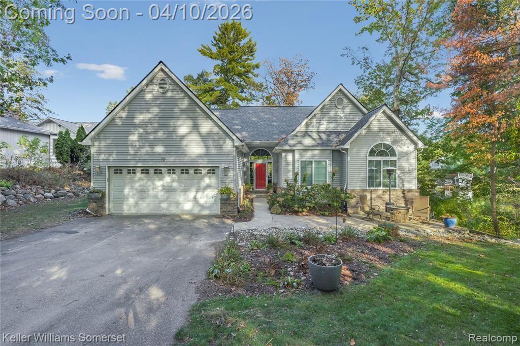 Stunning Newer Custom Ranch on Private All-Sports Indian Lake Beautiful custom-built ranch on over one acre offering peaceful lakefront living with convenient access to dining, shopping, and nature trails. This home features an open-concept layout with cathedral ceilings, a chef’s kitchen, spacious primary suite, two additional bedrooms, and first-floor laundry. Floor-to-ceiling lakeside windows provide exceptional views, complemented by a full-length maintenance-free deck. The walkout lower level includes a second full kitchen, private guest or in-law suite with attached bath, and a patio with hot tub just steps from the dock. Additional highlights include Andersen Fibrex windows, a state-of-the-art water softener, and an efficient modulating furnace for low heating costs. Enjoy all-sports Indian Lake—perfect for boating, kayaking, fishing, and relaxing.