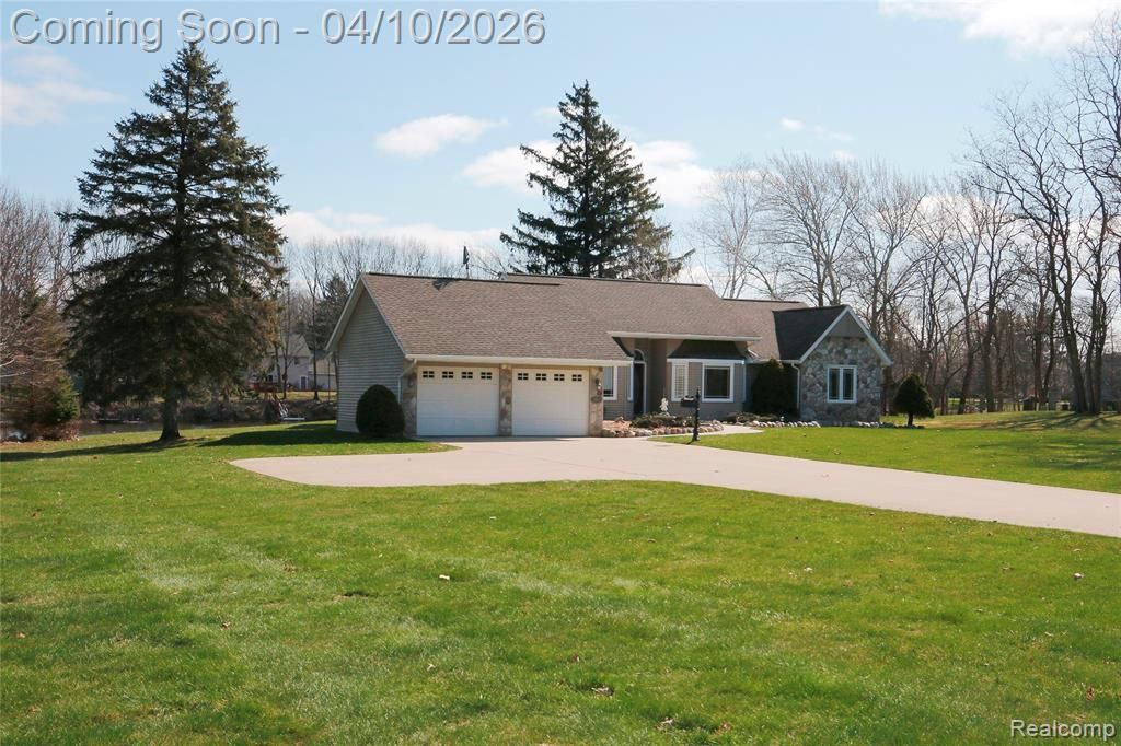 Beautifully maintained ranch nestled on a peaceful no-motor lake, sitting on two lots and offering privacy and serene views. Too many updates to mention. Document attached to listing. The updated kitchen features marble countertops and ample cabinetry, perfect for everyday living and entertaining. Spacious bedrooms provide comfort and flexibility, while the fully finished basement includes a second kitchen—ideal for guests, in-law living, or entertaining. Step outside to a maintenance-free deck and enjoy quiet mornings overlooking the water. A rare opportunity to own lakefront tranquility with city conveniences just a couple miles away! Professional photos to come Thursday April 9th
