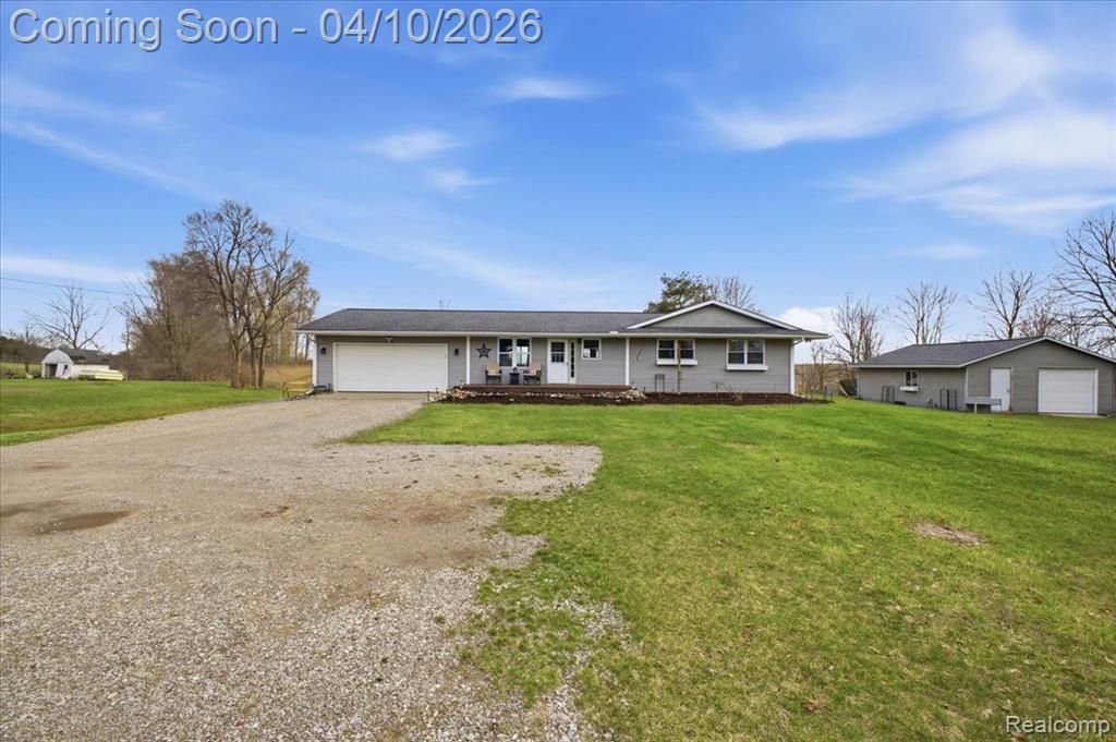Welcome to this well cared for ranch set on just over an acre and a half, offering an open floor plan and a setting that truly stands out. From the moment you step through the front door, your attention is drawn straight through the home to the sweeping views of rolling farm fields beyond. The kitchen features ceiling height cabinetry and a generously sized pantry, providing excellent storage and functionality, along with a well sized dining area adjacent to the kitchen that flows seamlessly within the open layout. The primary bedroom offers double closets and an attached bath for everyday convenience, while two additional bedrooms and a full bath complete the main level. The attached insulated two car garage adds practicality year round. Downstairs, the clean and dry basement provides flexibility for recreation, storage, or the opportunity to create additional finished living space. Outside, the backyard is framed by a quality wood fence, offering both charm and usability, along with a fire pit that sets the stage for summer evenings and gatherings. A detached insulated two car garage with a concrete floor and exterior 220 hookup provides added versatility for hobbies, equipment, or recreational needs. Set on a paved road with convenient access to nearby amenities and the village, this property offers a peaceful setting with everyday convenience. The view is something you truly have to experience in person, and it just might be what makes you want to call this place home.